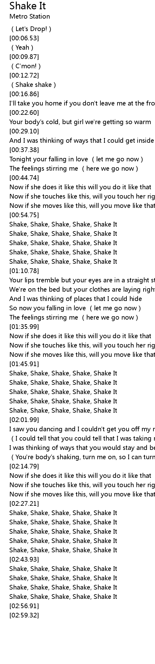 | [02:44.39] | Shake, Shake, Shake, Shake, Shake It |