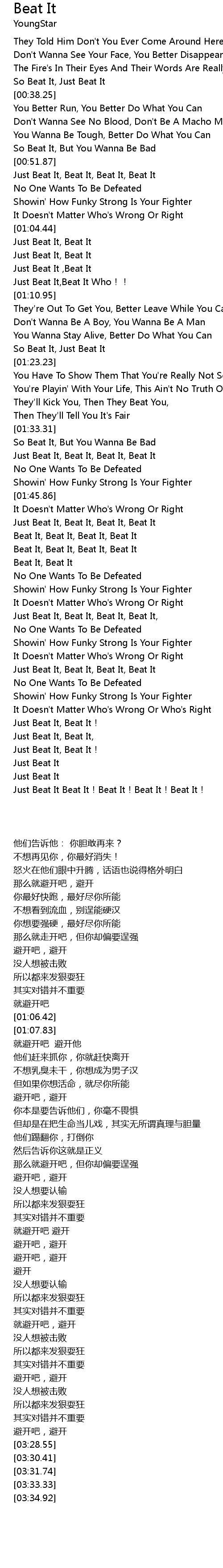 | [02:14.56] | Beat It, Beat It, Beat It, Beat It |