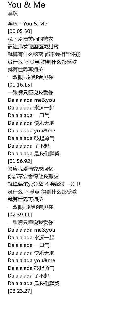 | [03:03.91] | Dalalalada you&me |