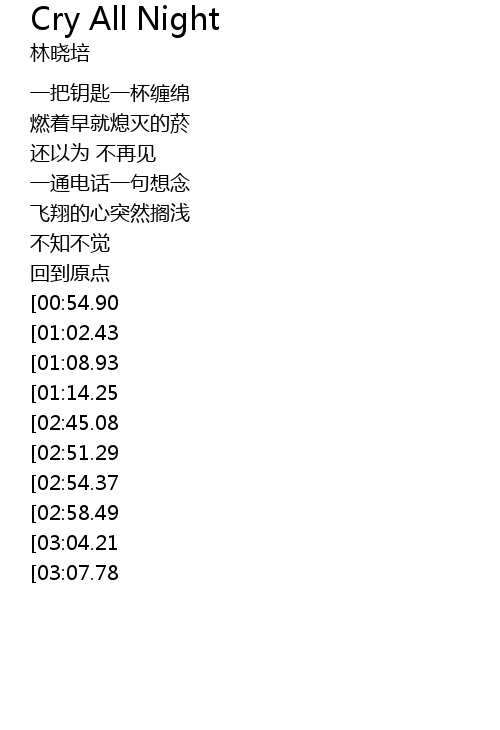 | [03:24.48][02:58.49][01:37.46] | So I cry all night |