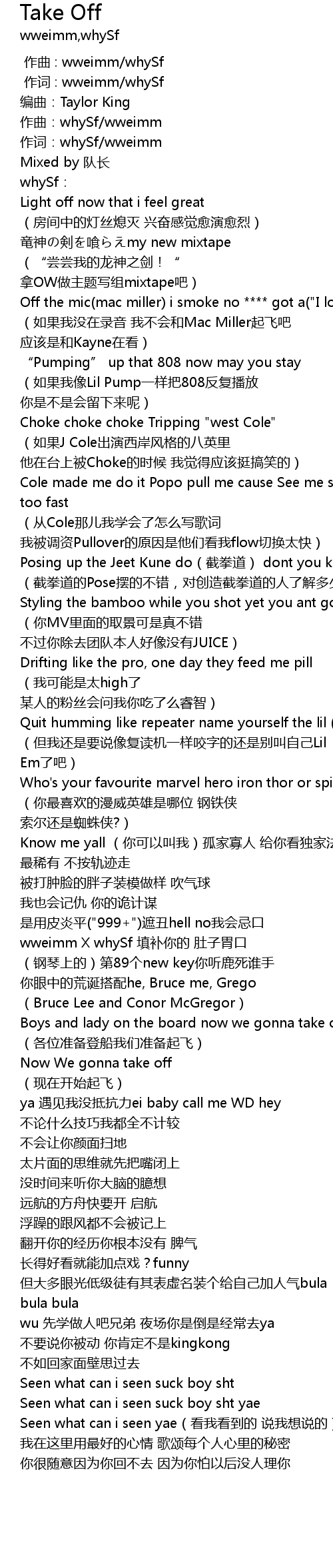| [00:40.592] | (从Cole那儿我学会了怎么写歌词 我被调资Pullover的原因是他们看我flow切换太快) |