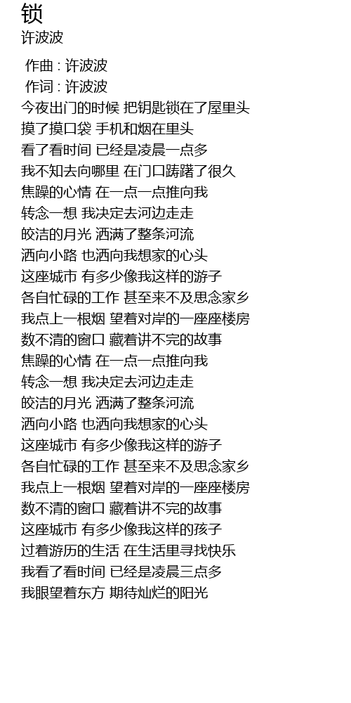 | [00:01.000] | 作词 : 许波波 |
