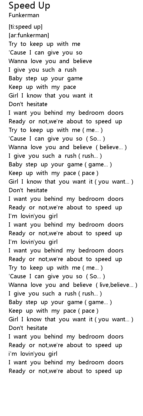 | [01:16.104] | Ready or not, we' re about to speed up |