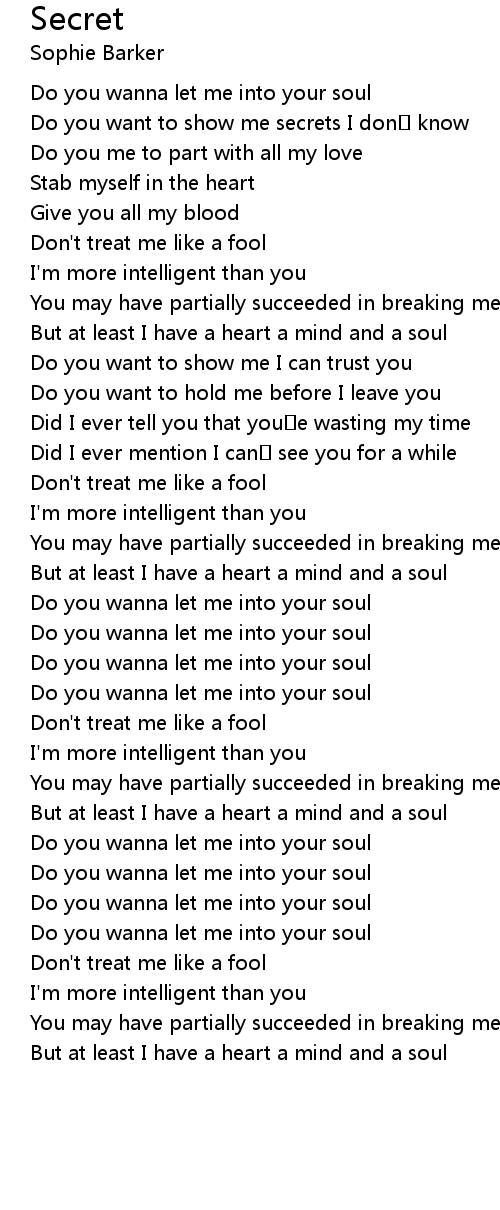 | Do you want to show me secrets I don know | |