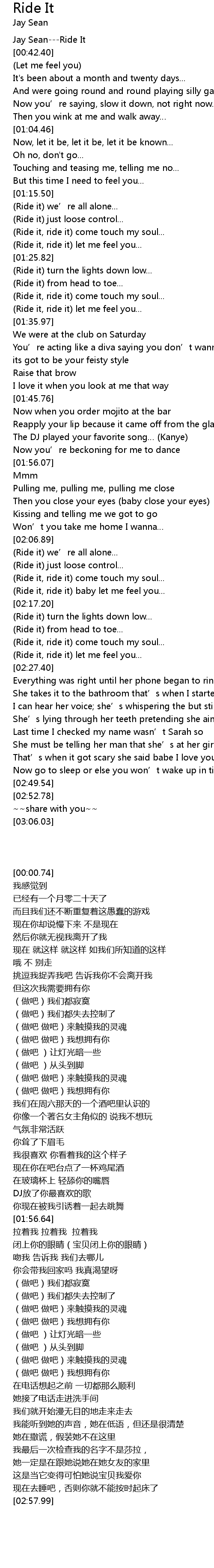 | [02:25.08] | Ride it, ride it let me feel you... |