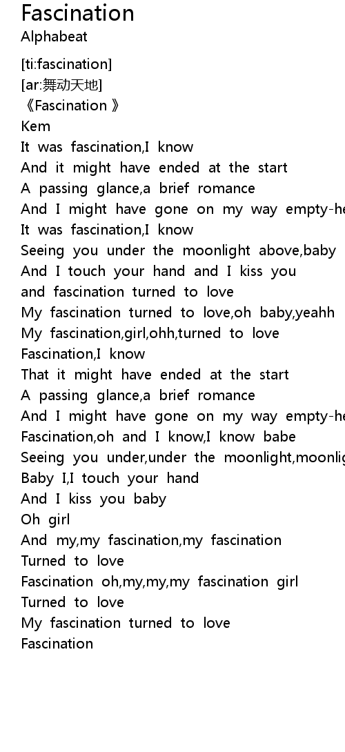 | [03:51.772] | Fascination oh, my, my, my fascination girl |