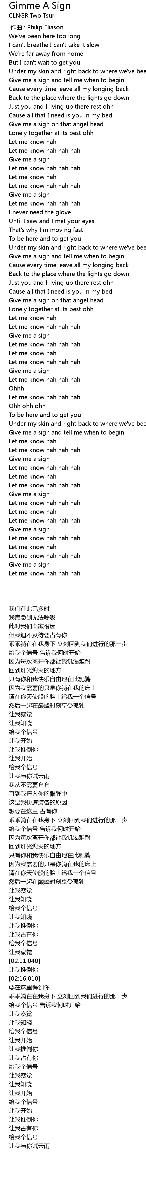 | [02:26.750] | Give me a sign and tell me when to begin |