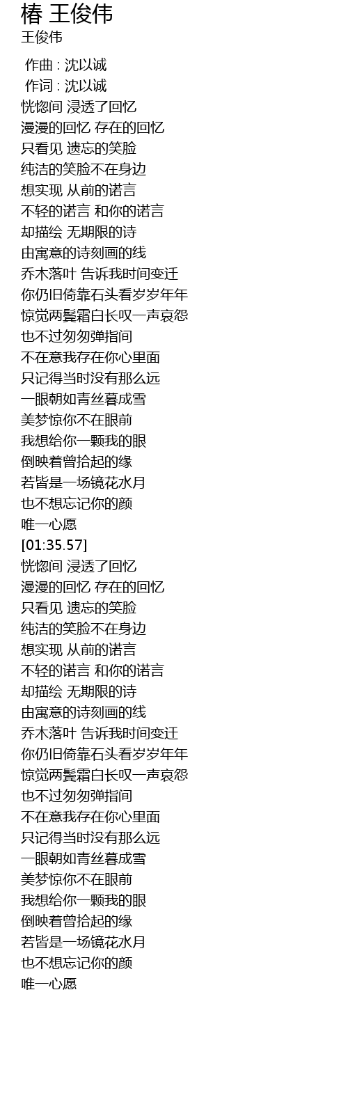| [00:36.75] | 乔木落叶 告诉我时间变迁 |
