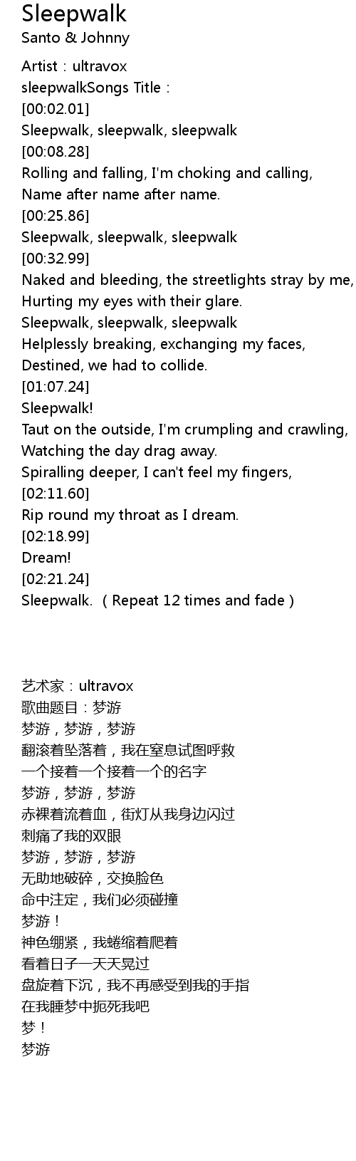 | [02:37.30] | Sleepwalk. (Repeat 12 times and fade) |