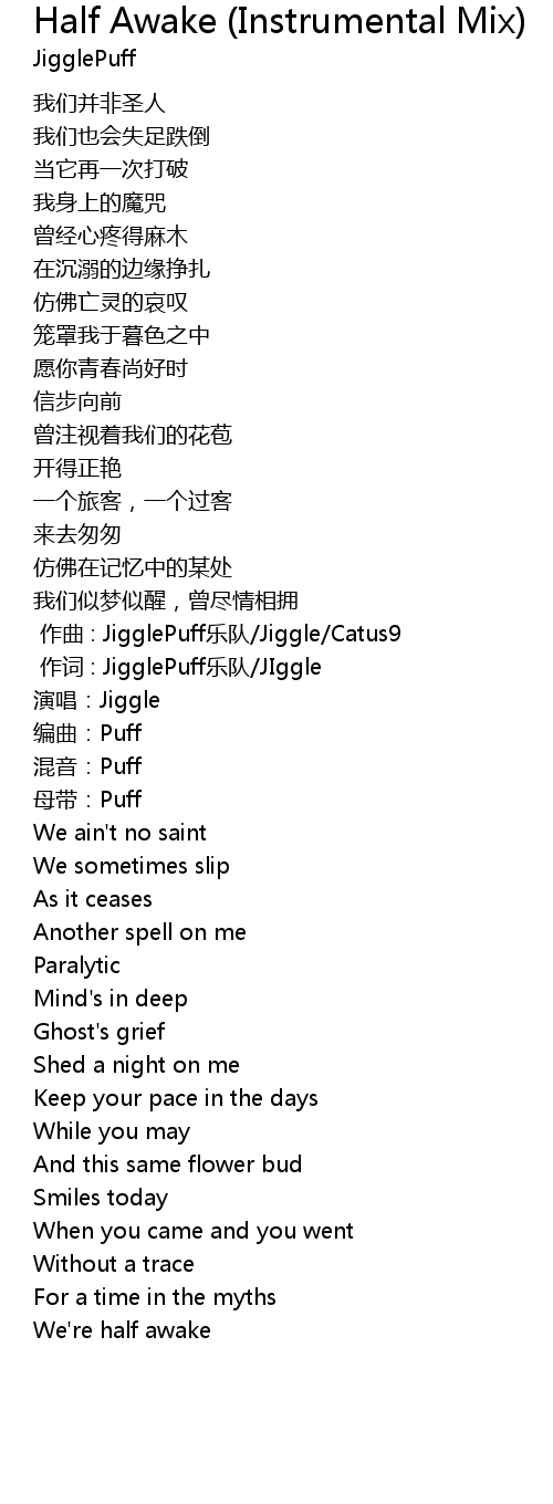 | [00:01.000] | 作词 : JigglePuff乐队/JIggle |