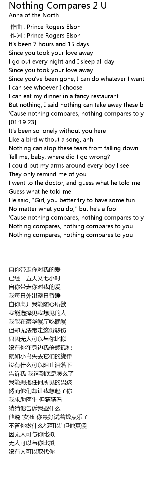 | [02:41.50] | Nothing compares, nothing compares to you |