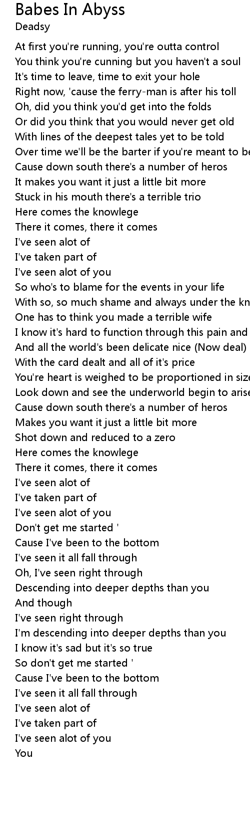 I'm descending into deeper depths than you |