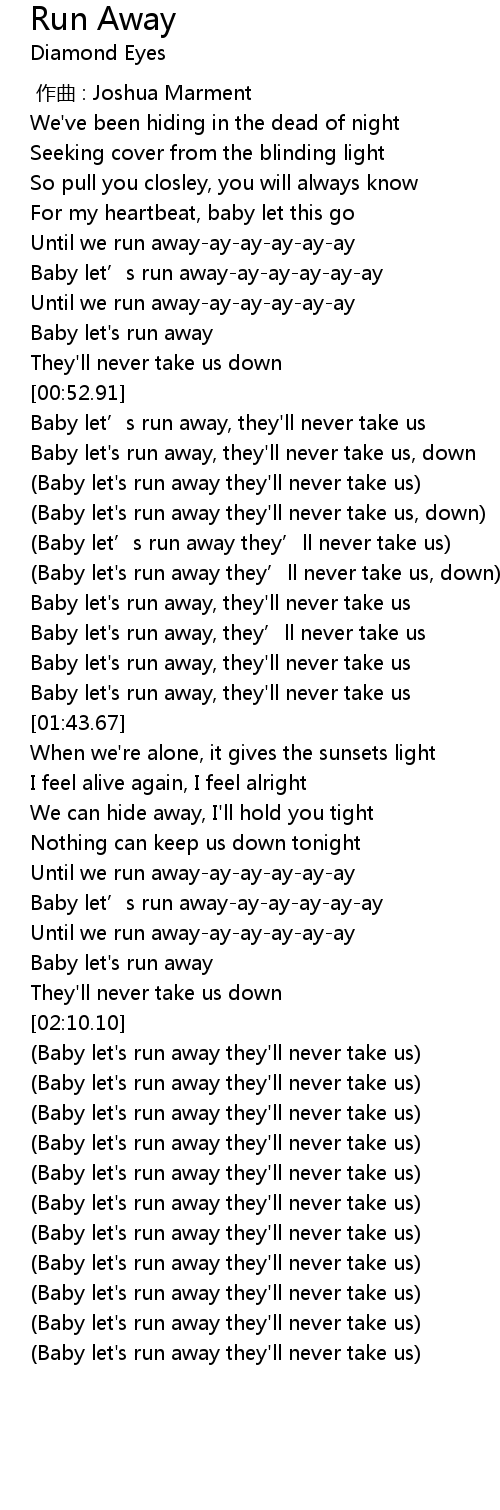 | [02:00.35] | Baby let’s run away-ay-ay-ay-ay-ay |
