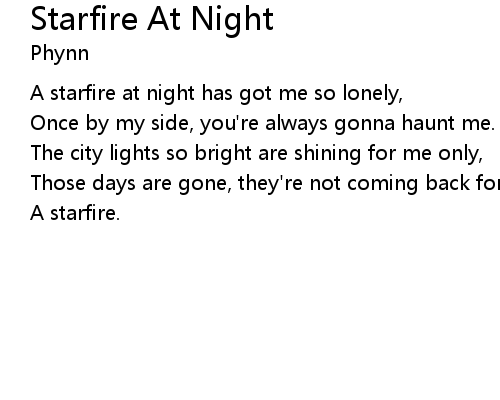 | A starfire at night has got me so lonely, | |