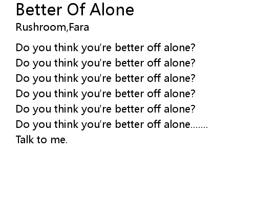 | [00:02] | Do you think you're better off alone? |