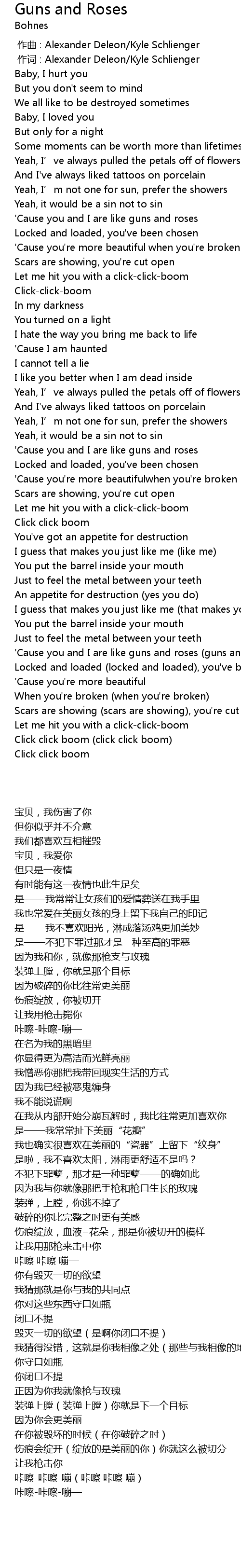 | [00:34.37] | 因为我和你,就像那枪支与玫瑰 |