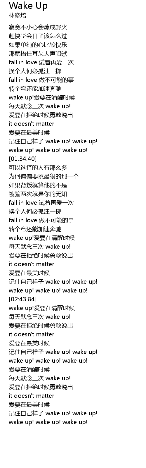 | [02:22.48] | wake up! ài yào zài qīng xǐng shí hòu |
