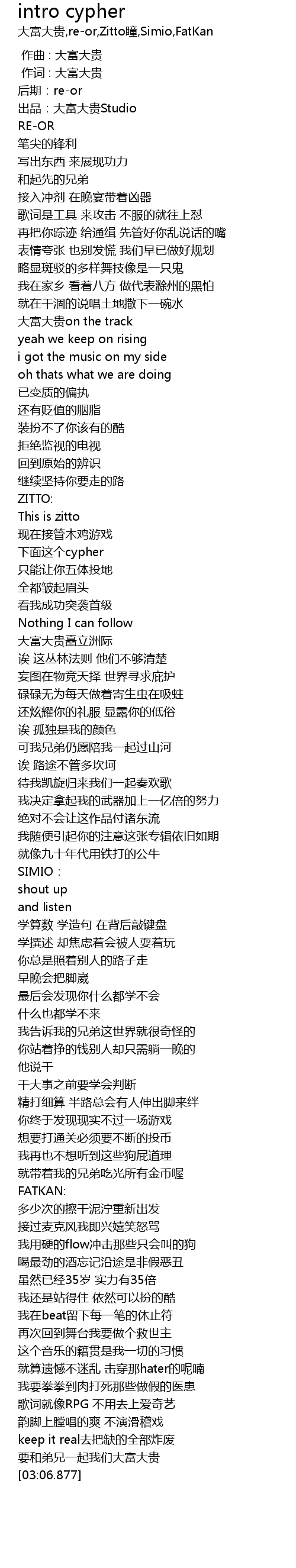 | [03:00.026] | keep it real qu ba que de quan bu zha fei |