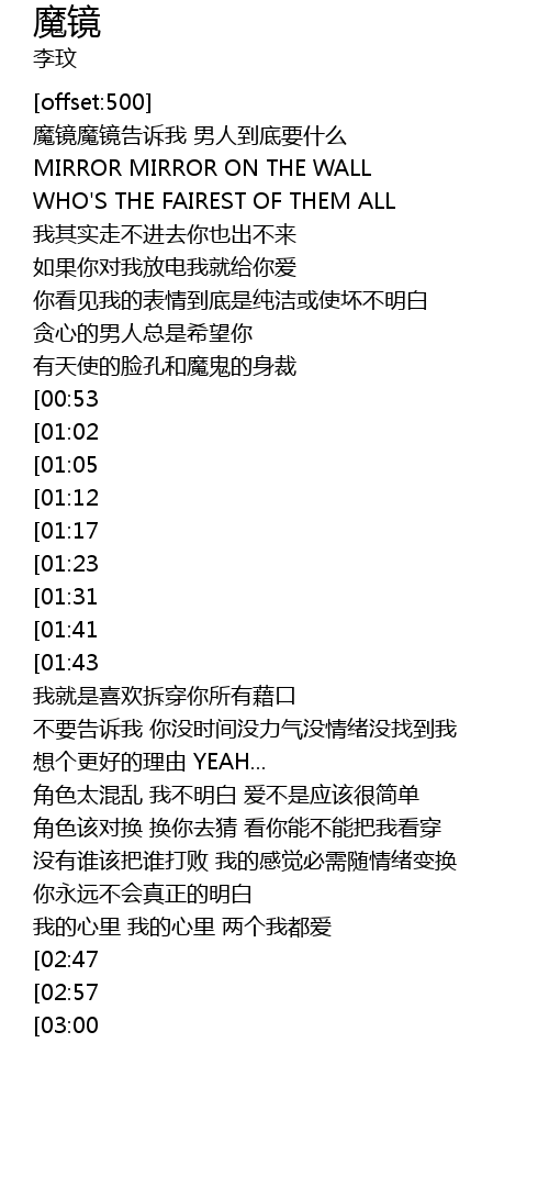 | [03:45][01:31] | 魔镜魔镜告诉我 男人到底要什么 |