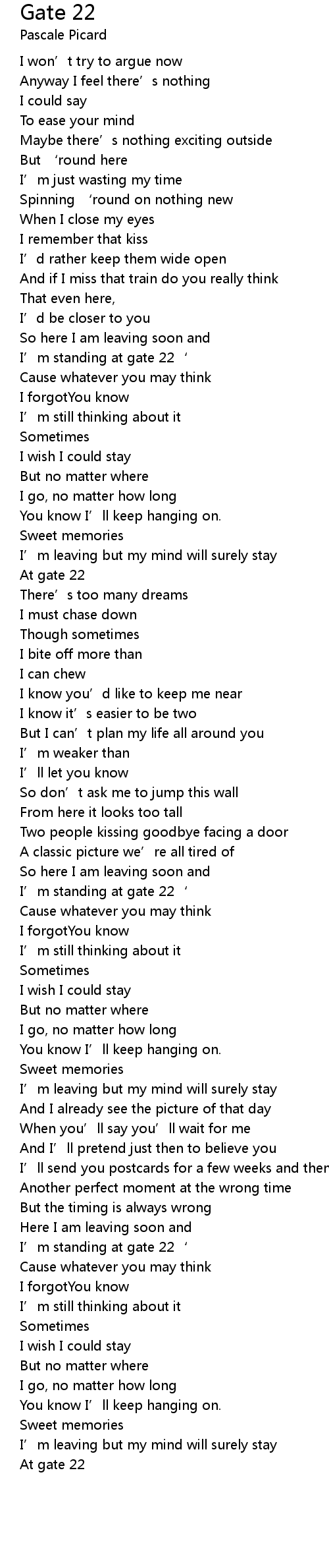 | I' m standing at gate 22' | |