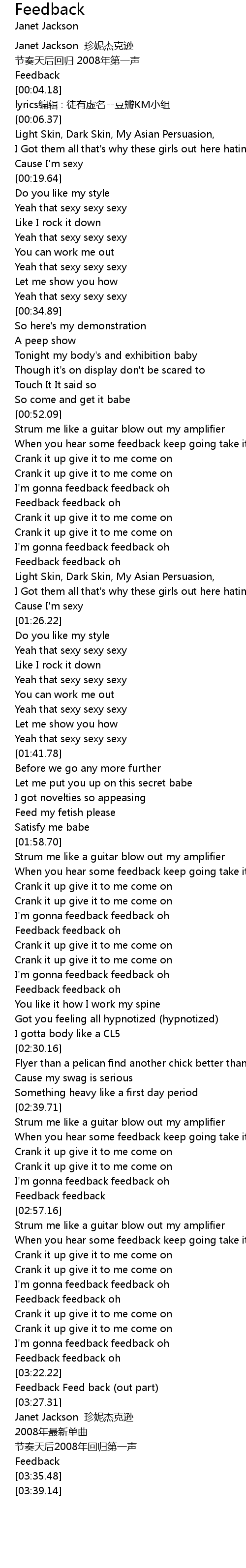 | [02:52.70] | I' m gonna feedback feedback oh |