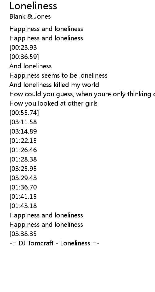 [03:33.07][03:25.95][02:42.24][01:29.82] Happiness seems to be loneliness