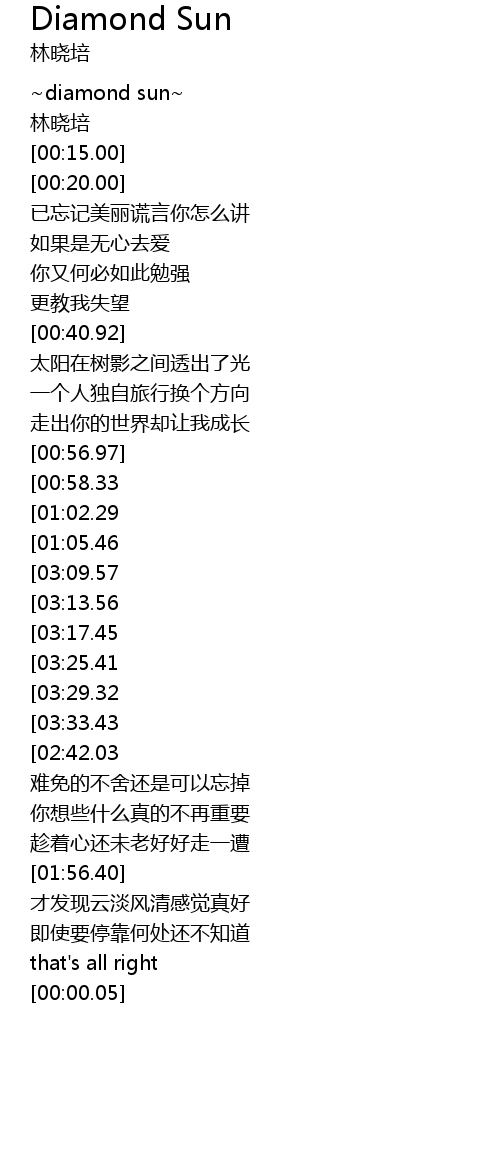 | [03:41.29][03:09.57][02:09.79][01:09.92] | sunshine ba you shang diu zai yi bian |