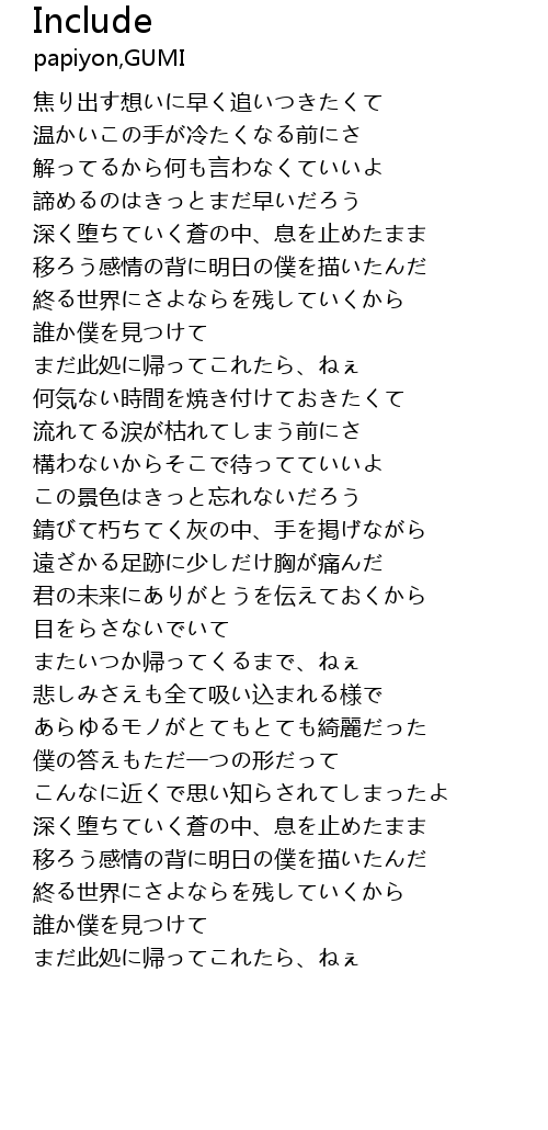 | [00:40.92] | 解ってるから何も言わなくていいよ |
