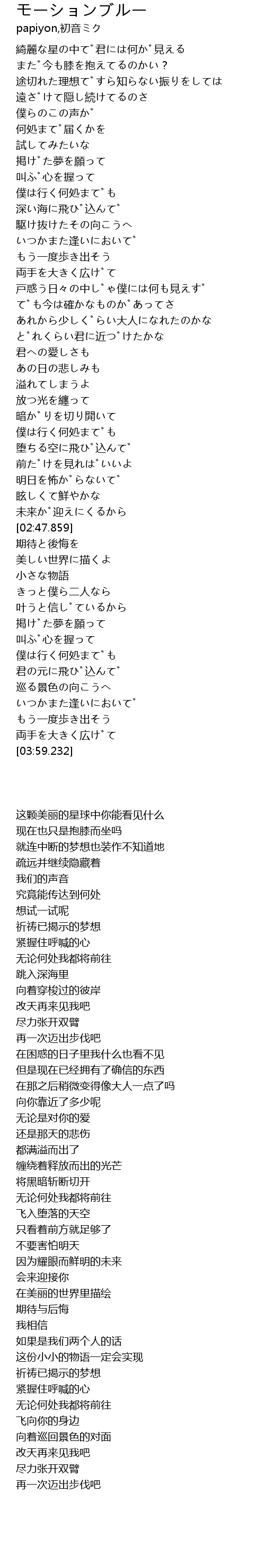 | [00:20.147] | 綺麗な星の中で君には何が見える |