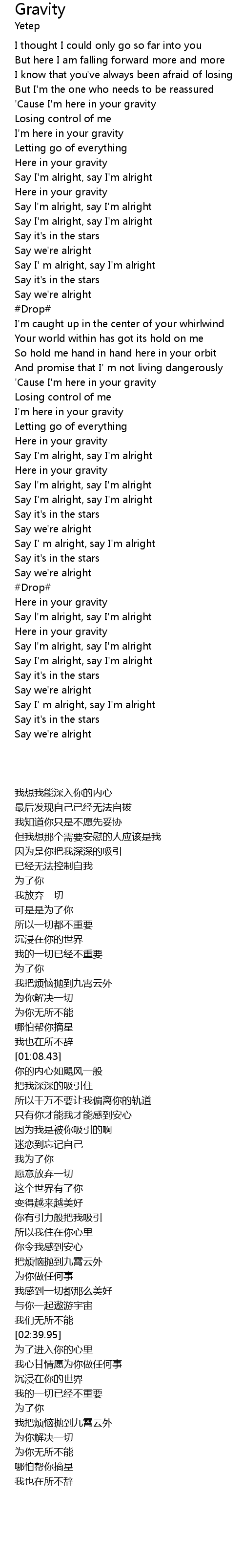 'Cause I'm here in your gravity |