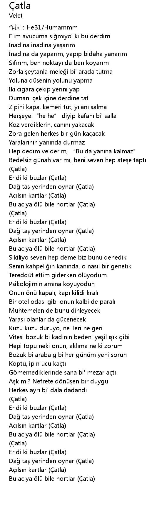 | [01:06.795] | Eridi ki buzlar (Çatla) |