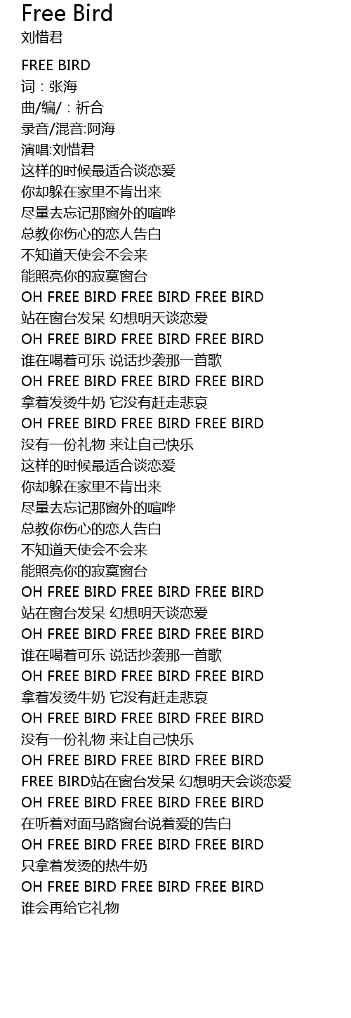[02:49.470] FREE BIRD zhàn zài chuāng tái fā dāi huàn xiǎng míng tiān huì tán liàn ài
