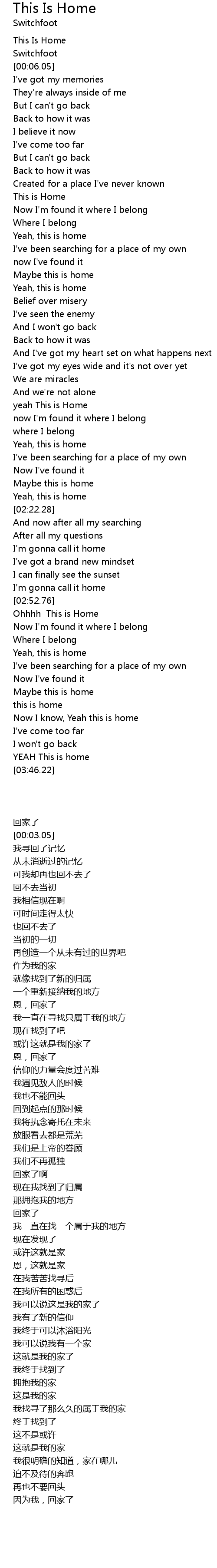 This Is Home 歌词
