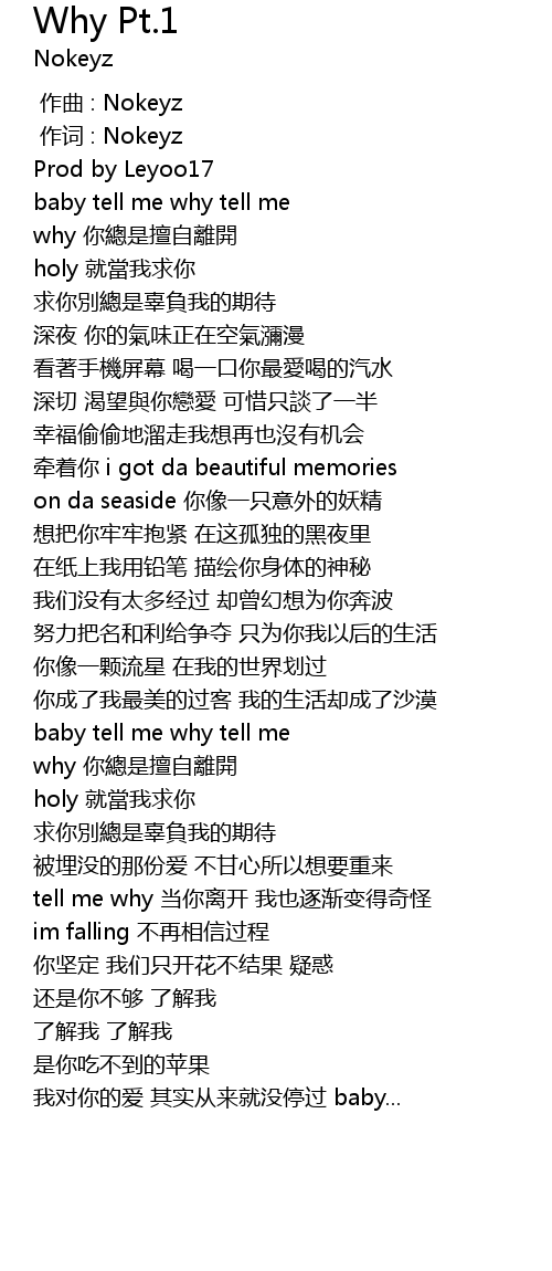| [01:36.457] | tell me why 当你离开 我也逐渐变得奇怪 |