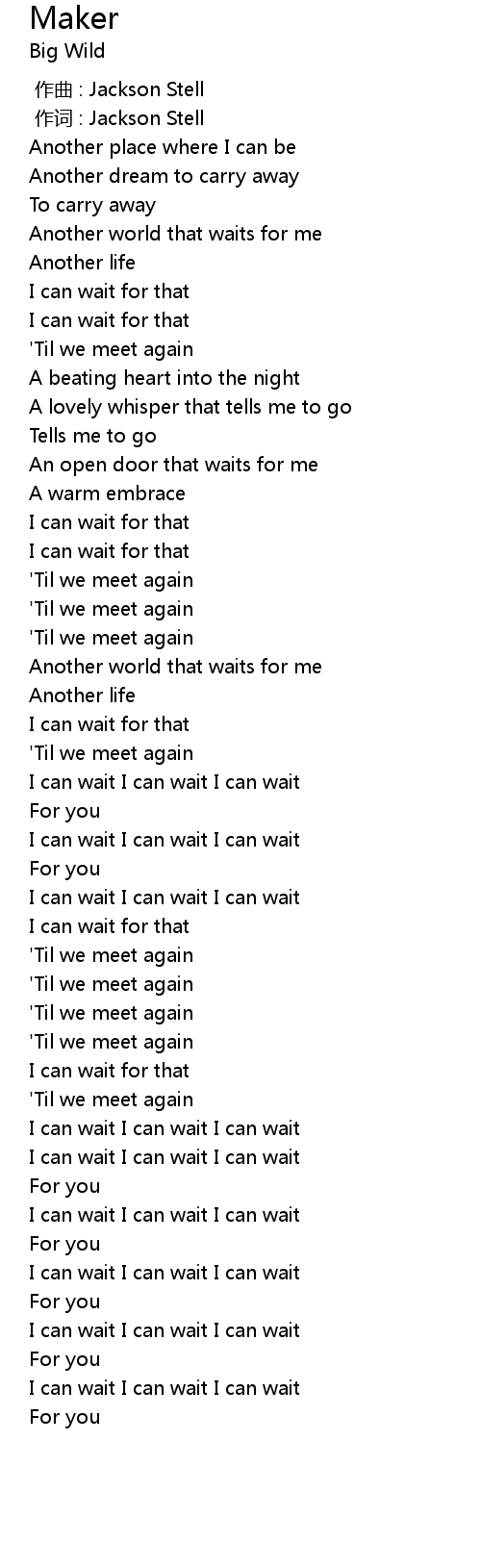 | [03:48.75] | I can wait I can wait I can wait |
