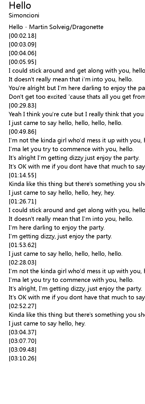 [00:00.29] Hello - Martin Solveig/Dragonette