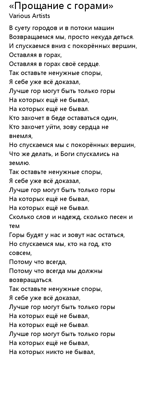 И спускаемся вниз с покорённых вершин, |