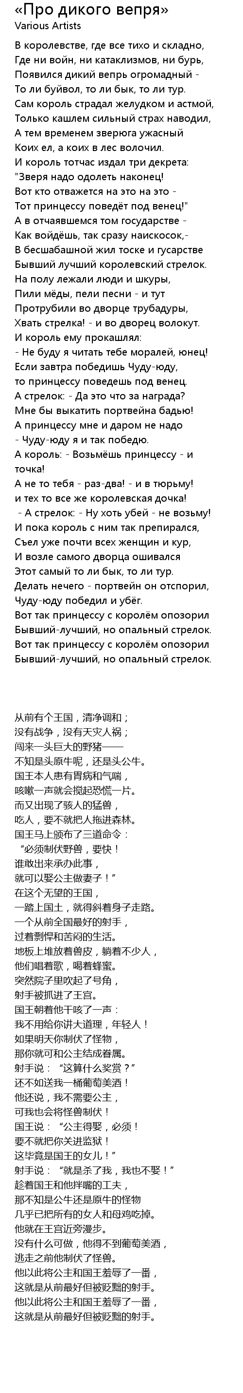 | 歌曲 | «Про дикого вепря» |