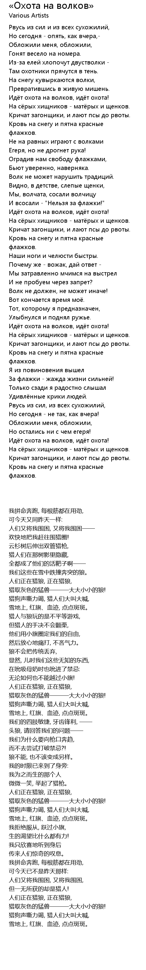 | [01:16.12] | Идёт охота на волков, идёт охота! |
