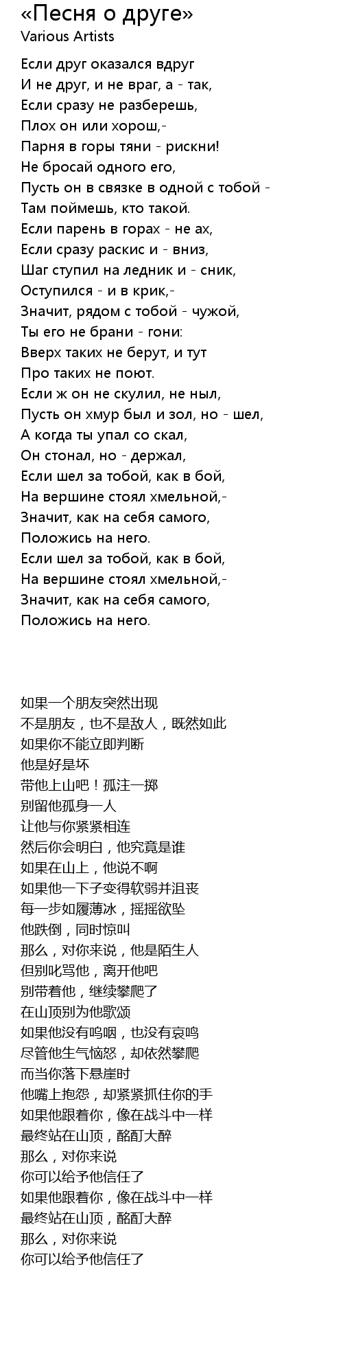 | 歌曲 | «Песня о друге» |