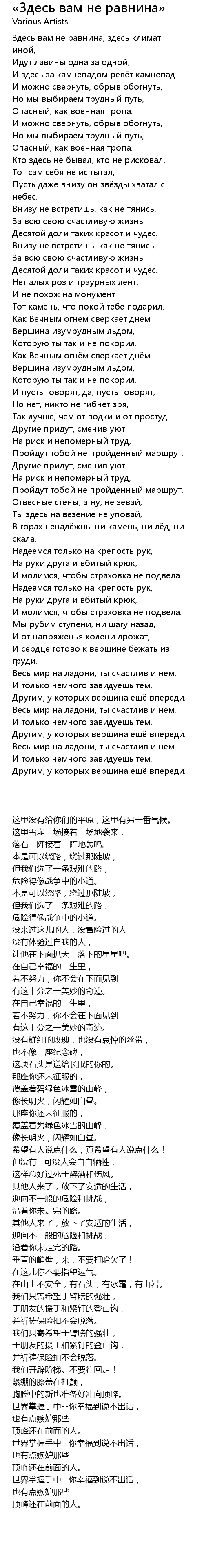 | 歌曲 | «Здесь вам не равнина» |