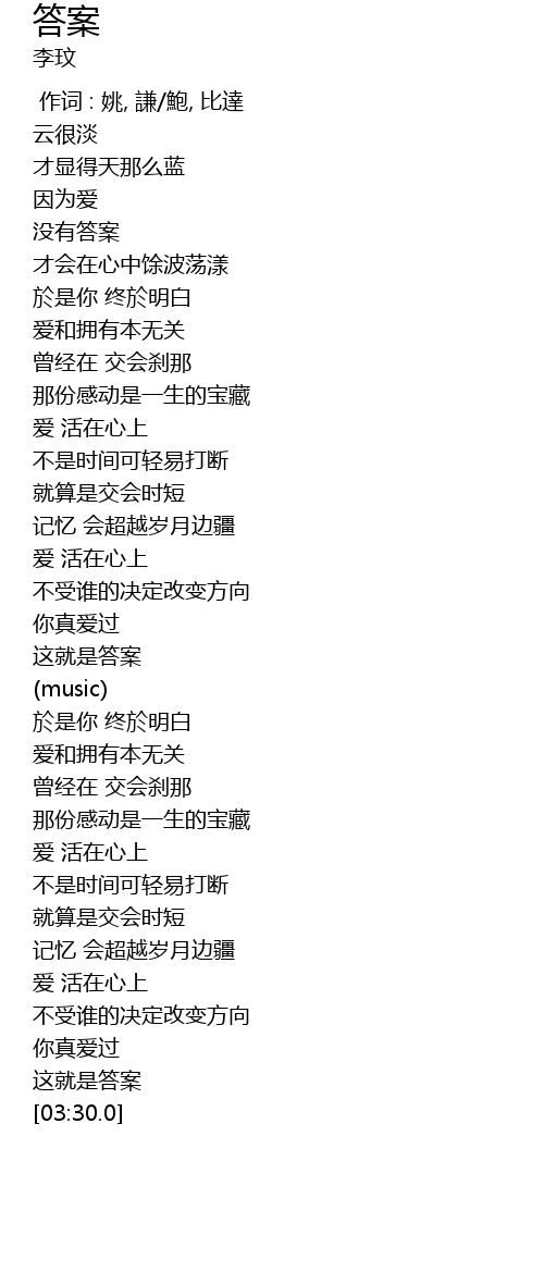 | [03:24.0] | 这就是答案 |