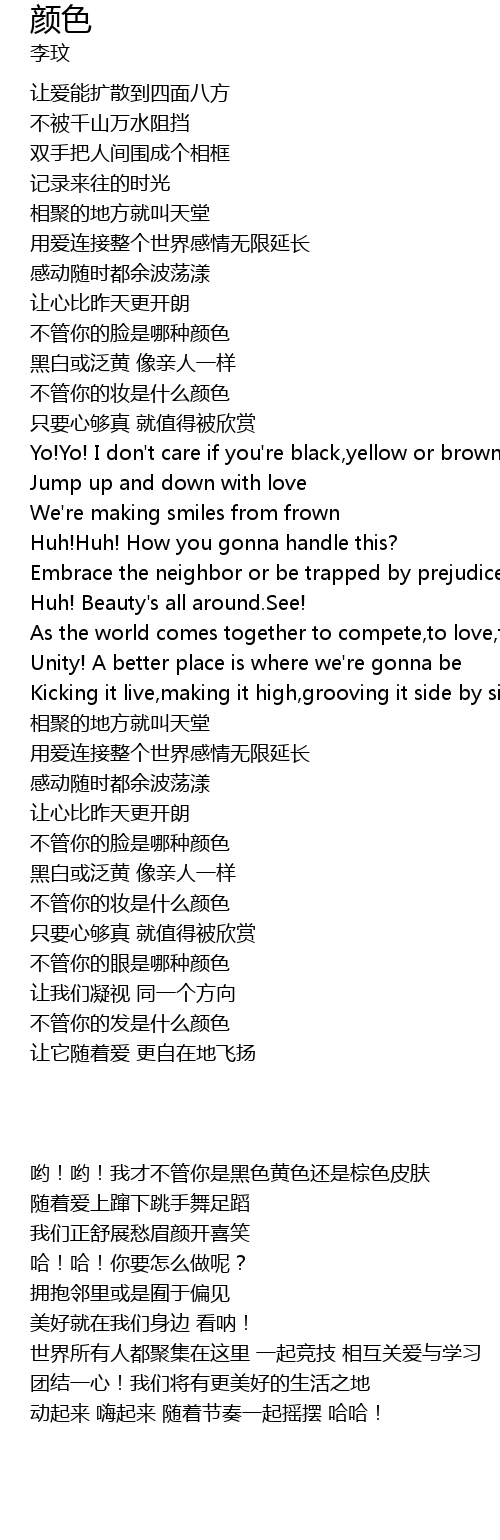 | [01:38.000] | Yo!Yo! I don't care if you're black,yellow or brown |