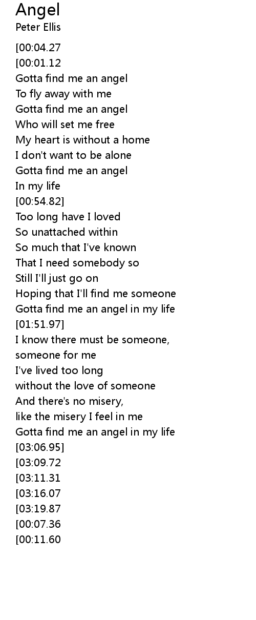 [02:50.35] Gotta find me an angel in my life