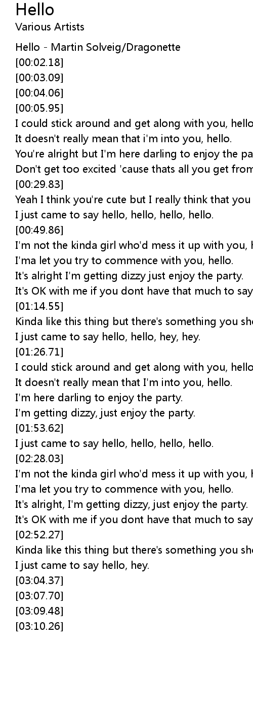 [00:00.29] Hello - Martin Solveig/Dragonette