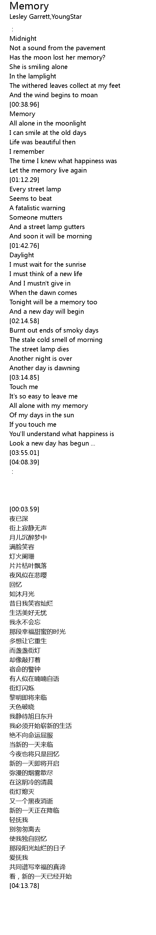 | [00:42.31] | All alone in the moonlight |