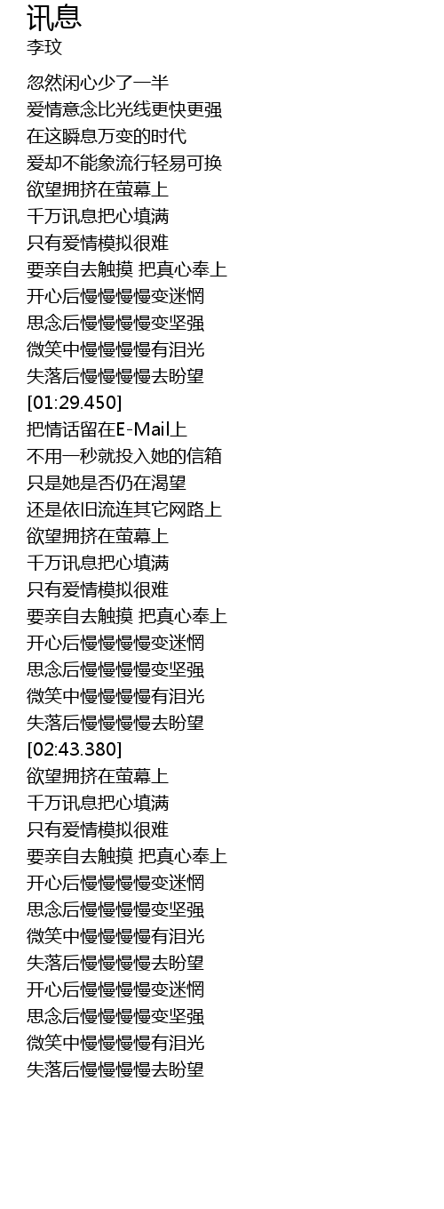 | [01:35.250] | bǎ qíng huà liú zài EMail shàng |