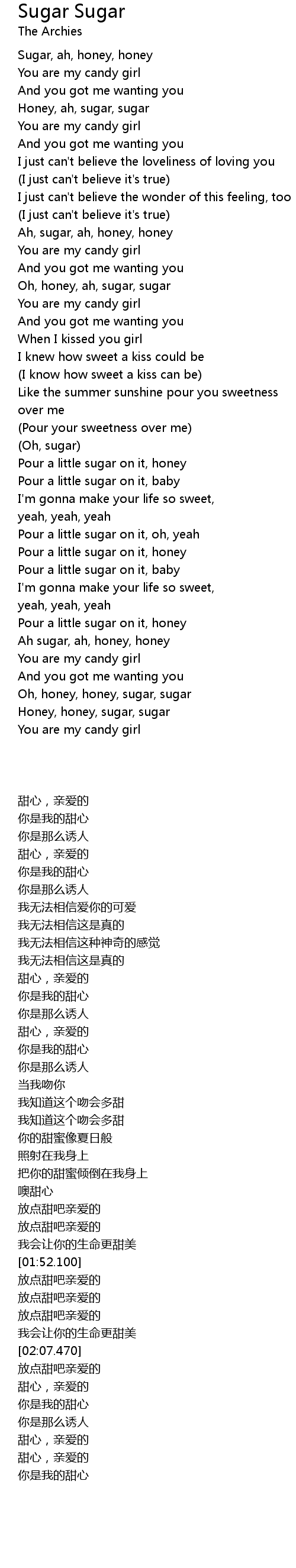 Oh, honey, ah, sugar, sugar |