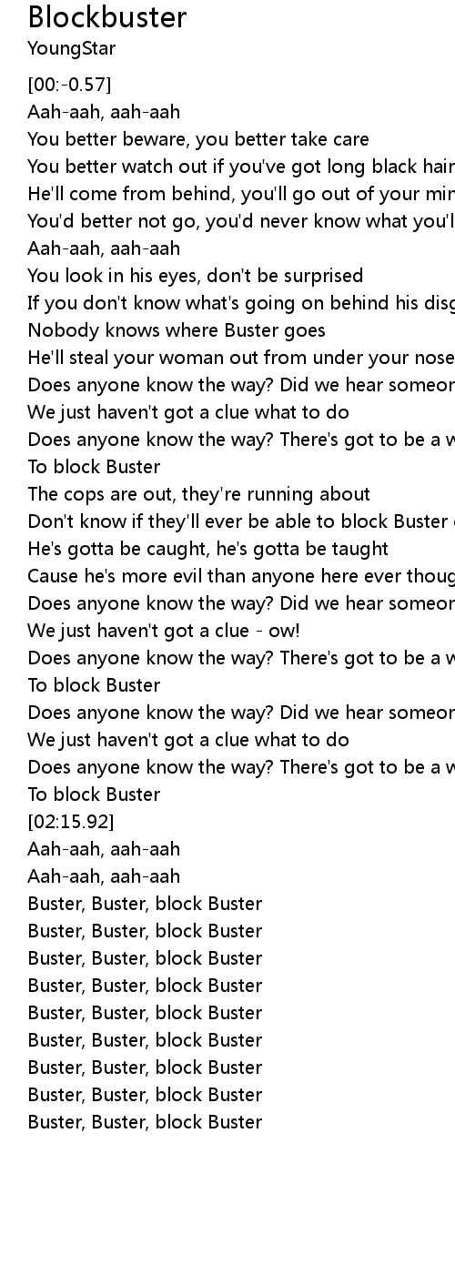 Buster, Buster, block Buster |