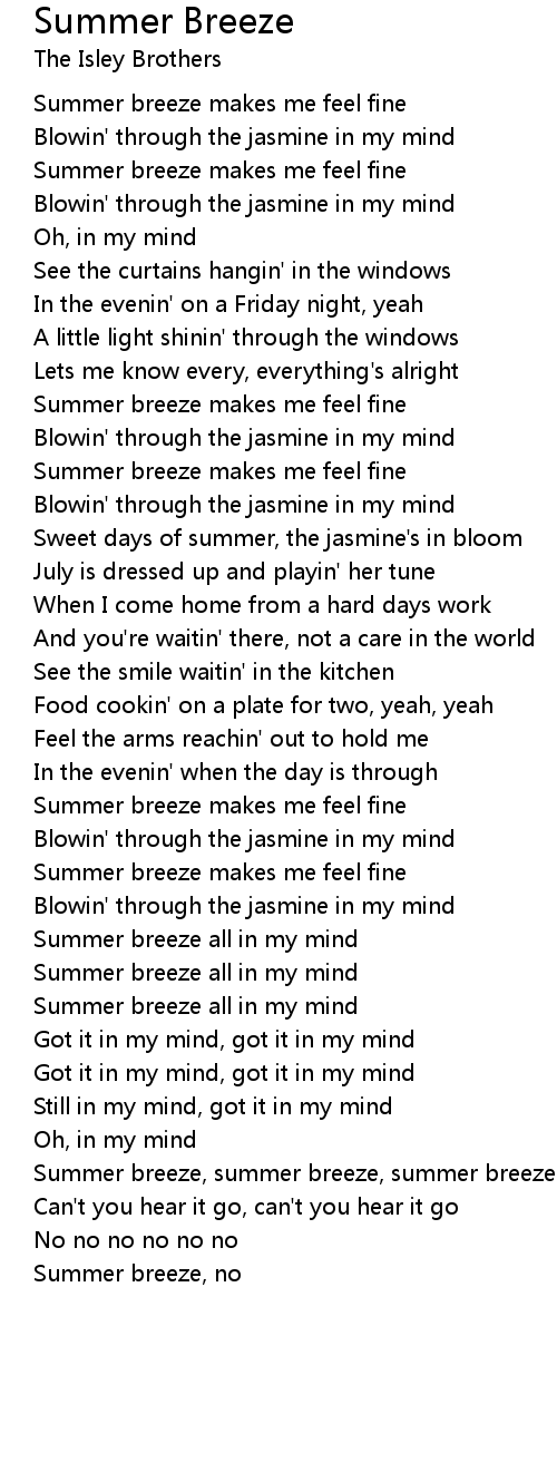 Summer breeze, summer breeze, summer breeze |